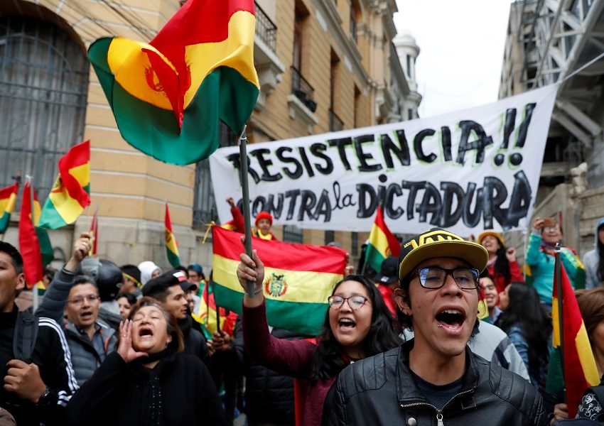 People shout slogans during a protest against Bolivia’s President Evo Morales in La Paz, Bolivia, November 9, 2019. The banner reads ‘Resistance against the dictatorship.’ REUTERS/Carlos Garcia RawlinsContinue Reading